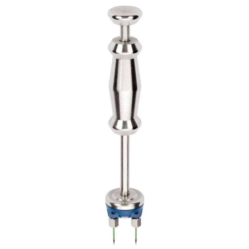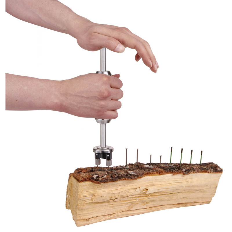 Das Set enthält die Ramm-Elektrode M 18 zur widerstandsbasierten Feuchtemessung von verschiedenen Hölzern und Holzwerkstoffen bis zu einer Stärke von 180 mm.