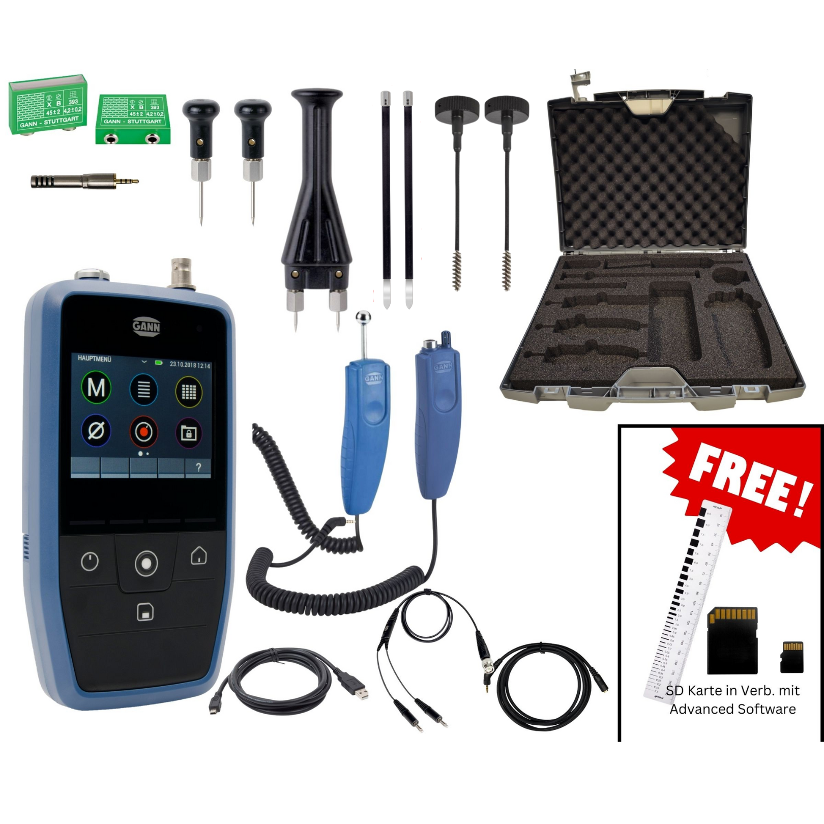 Gann Hydromette CH 17 - Set 4 (B55BL, TF-IR BL, M20, M25-100, MK8, MK26, TF-Stick 16K25P, MK18, M6, M6-Bi300, Prüfadapter Holz, Prüfadapter Bau, BK 14-IV) #3154