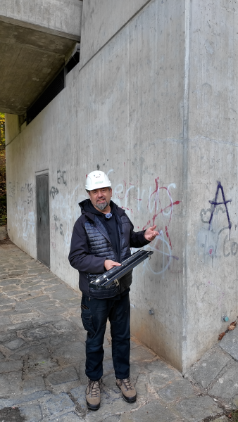 Mit dem Resonanztaster von 4proof haben Sie die Möglichkeit, innerhalb kürzester Zeit auch große Flächen auf Hohlstellen zu überprüfen.