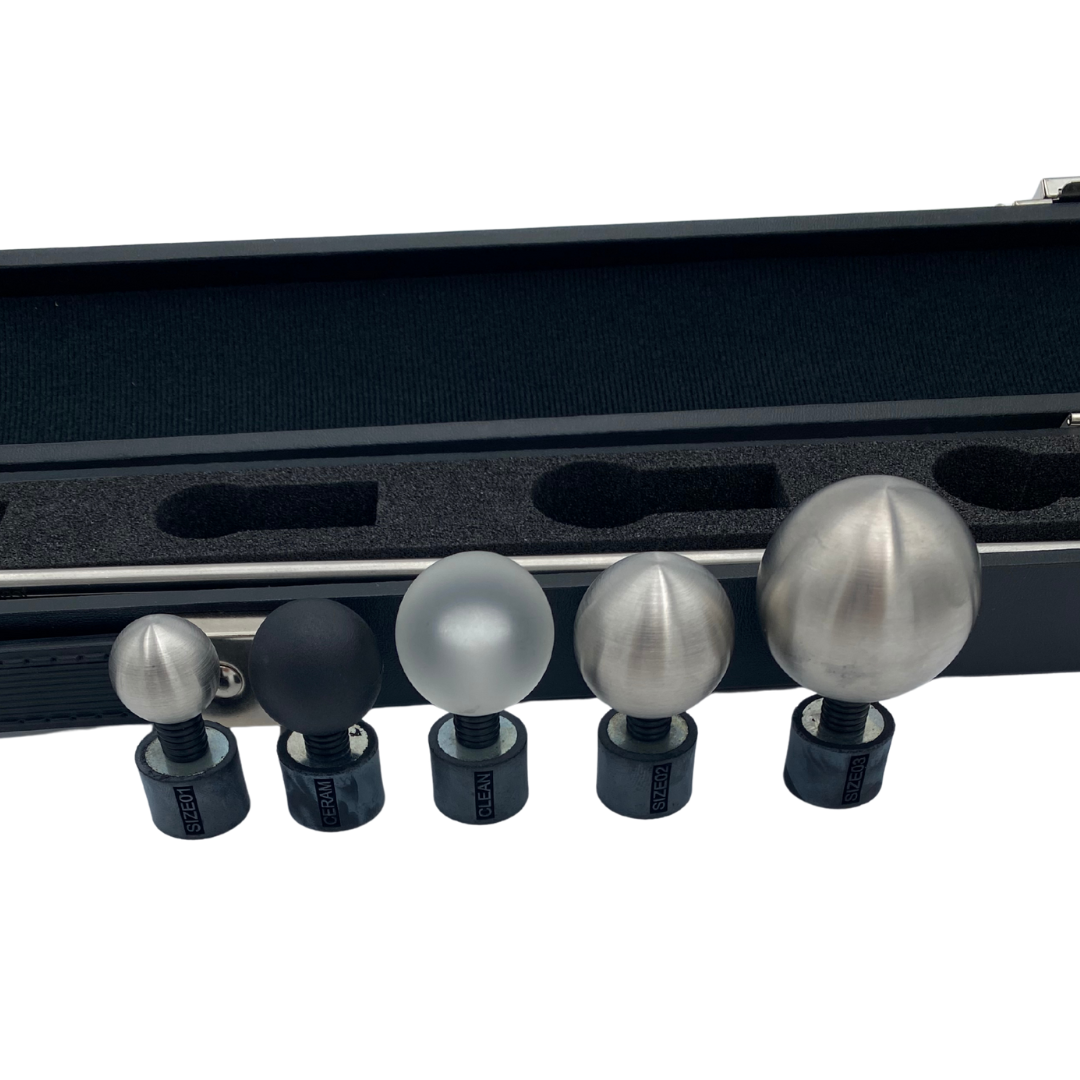 Die mitgelieferten Resonanzsspitzen (Kugeln) sind auf die verschiedensten Anwendungsbereiche abgestimmt. Die Spitze "CLEAN" z.B. ist speziell für gestrichene Wandputze, da sie keinerlei Abriebspuren hinterläßt.
