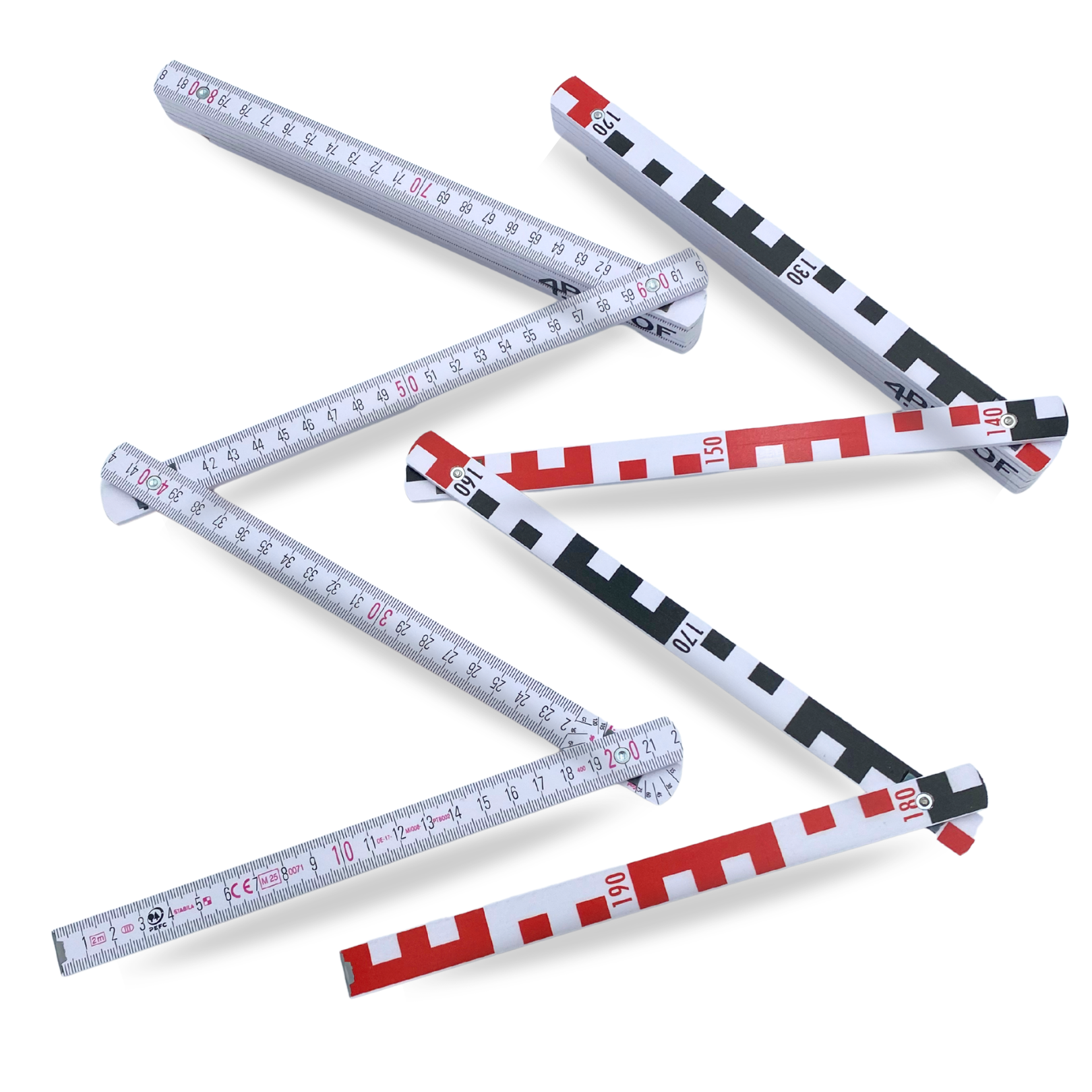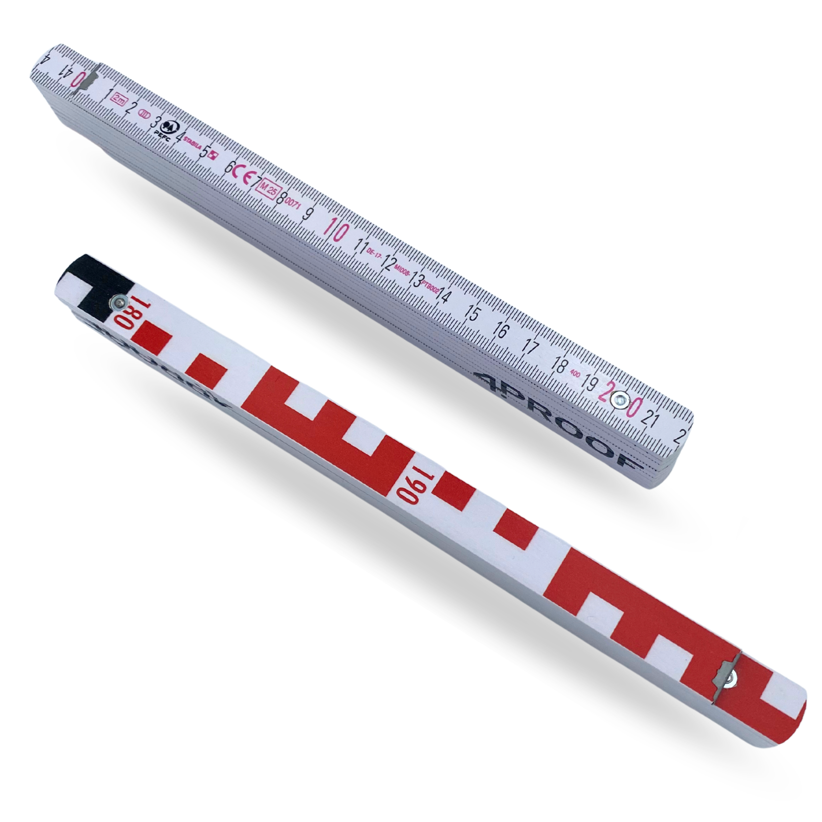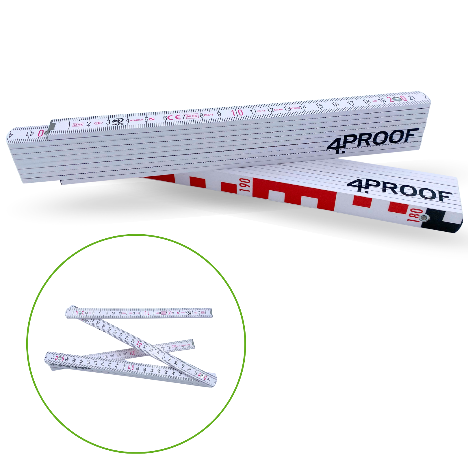 4proof Holz-Gliedermaßstab 1407 GEO – 2m Profi-Zollstock mit Spezial-Skalierung – Weiß